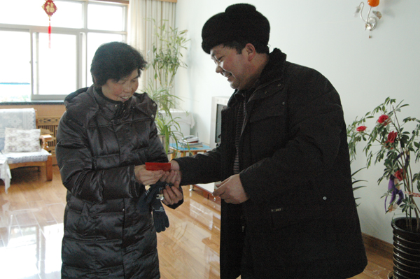 图4 学院工会副主席为职工遗孀送上慰问金